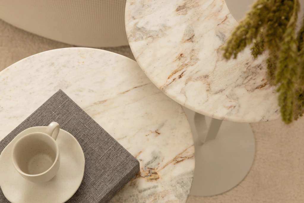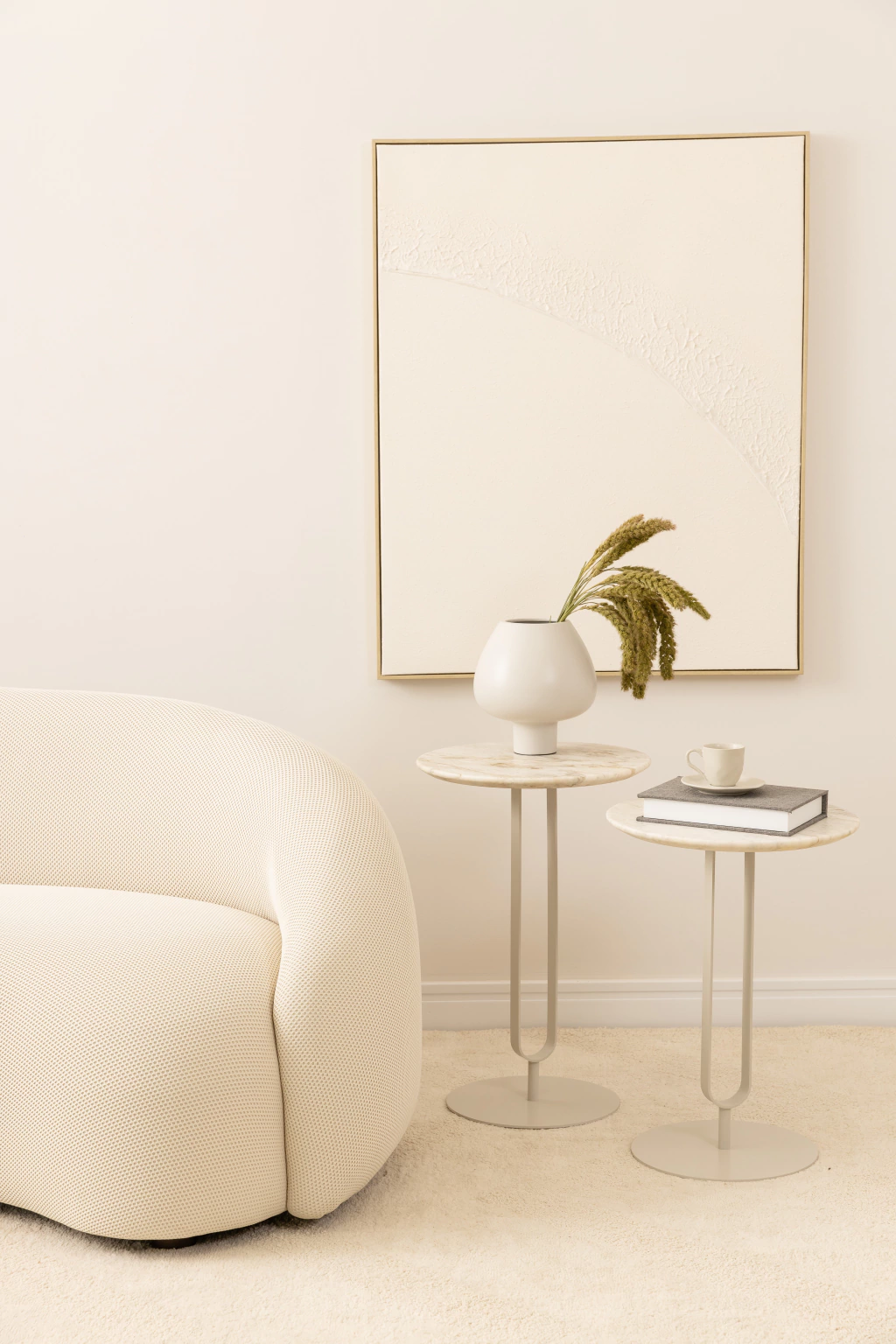 Transforme o seu ambiente com a Mesa Lateral Archie, uma peça que une sofisticação e funcionalidade. Com um tampo em mármore de alta qualidade, esta mesa traz um toque de elegância que complementa qualquer decoração.
