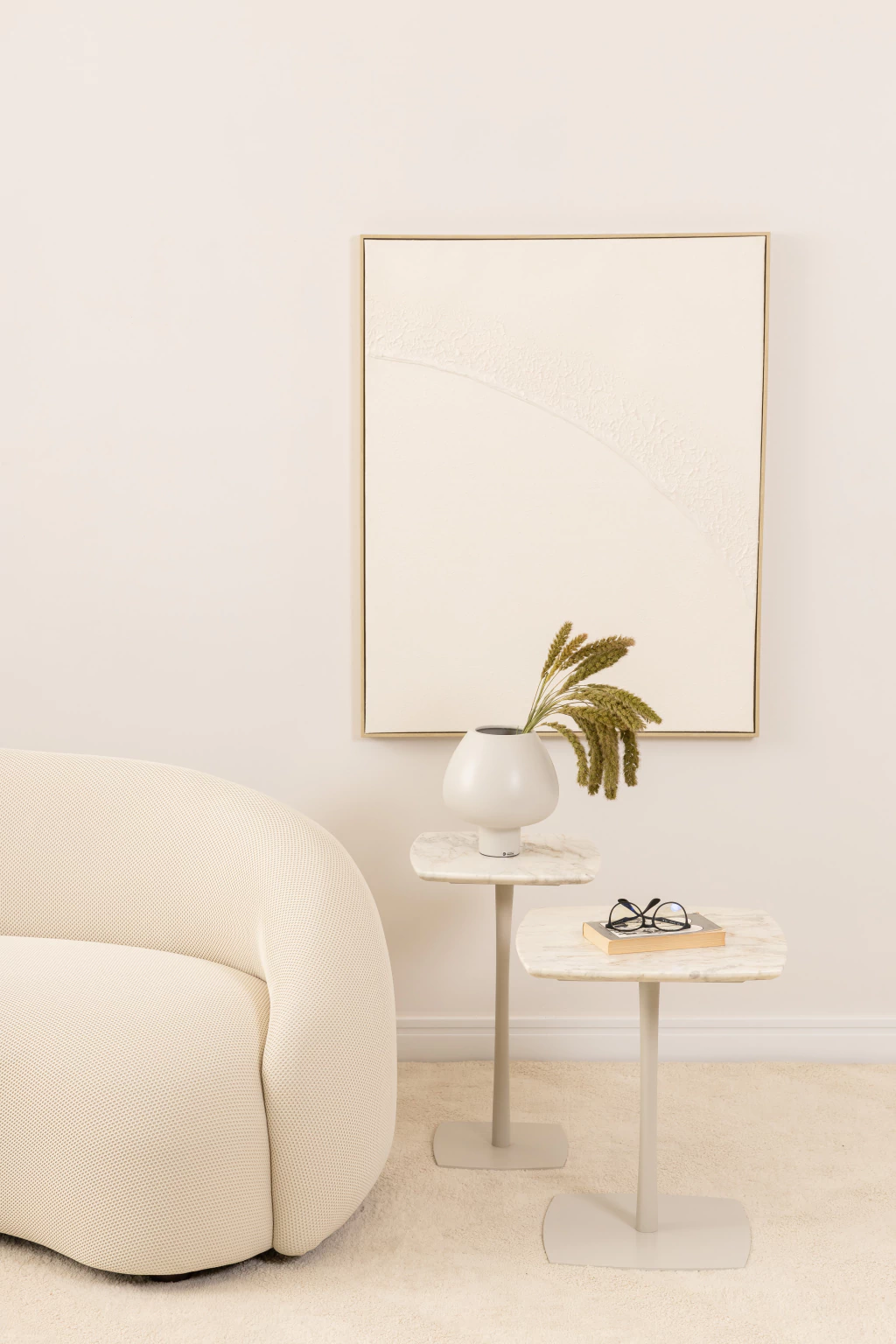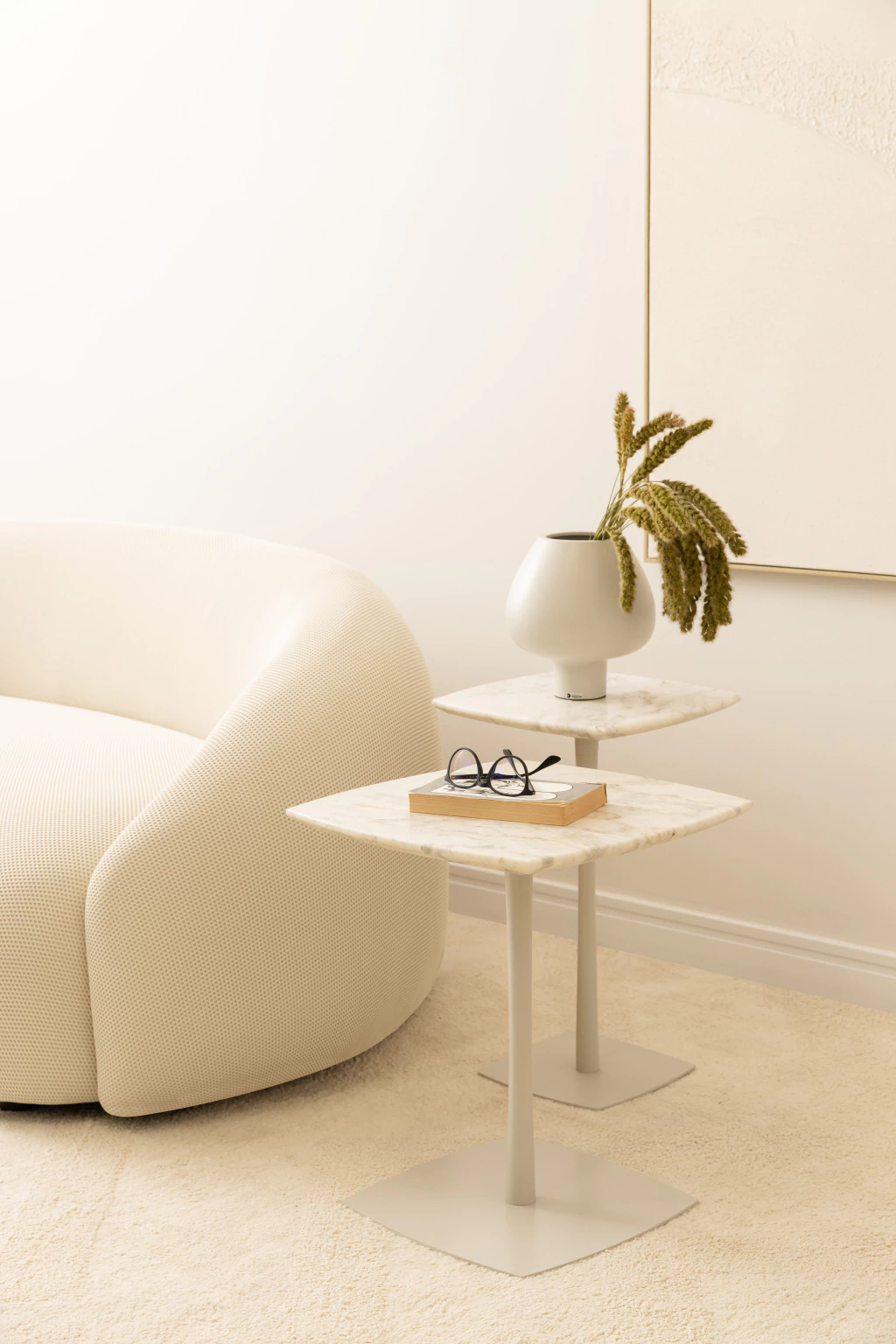 Dê um toque de sofisticação ao seu ambiente com a Mesa Lateral Ellen, uma peça que combina o requinte do mármore com um design assinado pela renomada marca Dua Dsg.