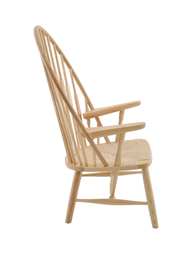 Poltrona em madeira com assento trançado em corda (palha sintética).